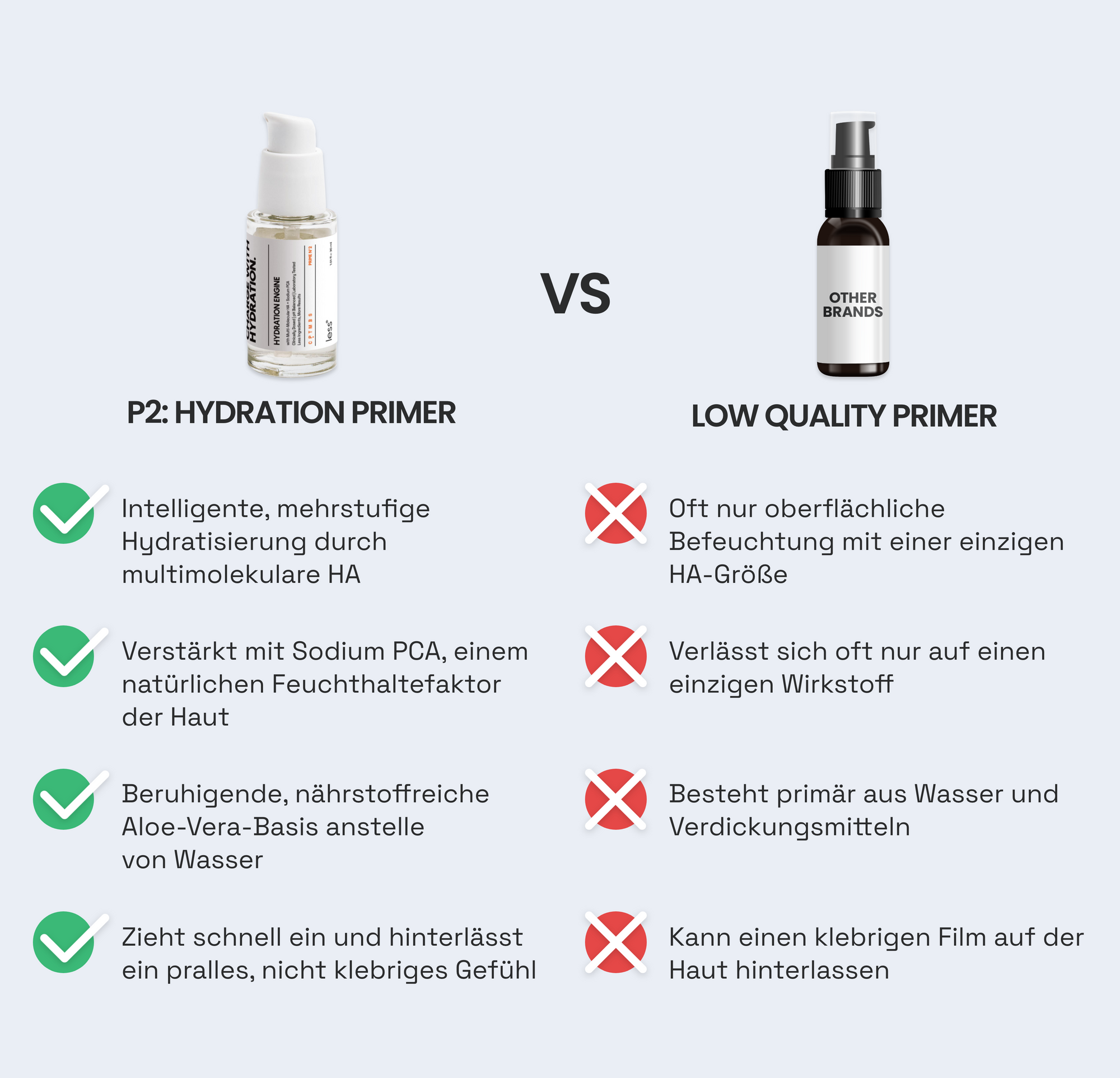 Unsere P2 Formel ist intelligenter. Wir kombinieren verschiedene Molekülgrößen – hochmolekulare für den Oberflächenschutz und niedermolekulare (hydrolysierte), um tiefer einzudringen und langanhaltende Feuchtigkeitsspeicher aufzubauen.