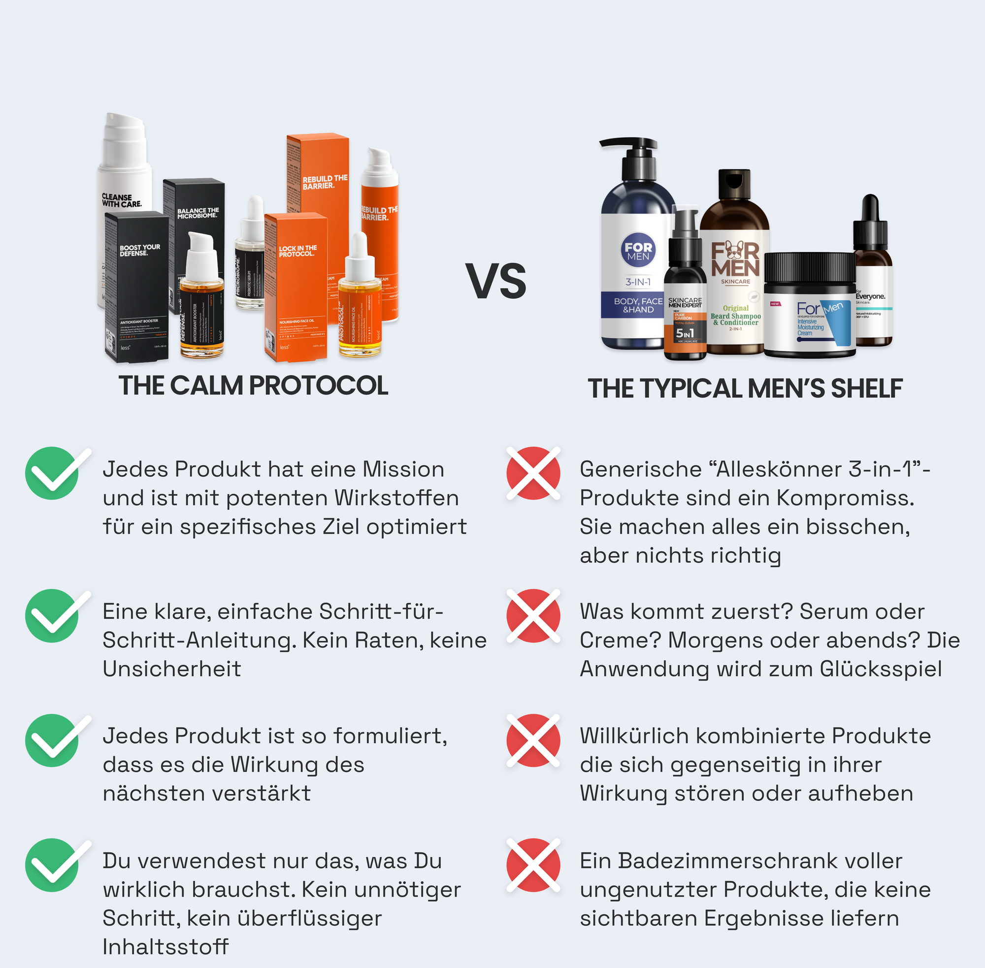 zwischen zufälliger „Sensitive“-Pflege und einer präzise aufgebauten Beruhigungs-Routine. Zwischen oberflächlicher Linderung – und strukturellem Haut-Engineering, das echte Resilienz erzeugt.